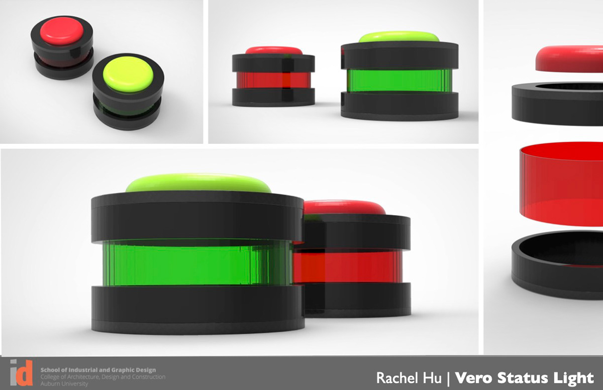 Our final design, Vero, is a working, battery operated, model that switches between green and red to indicate Down to Chat and Do Not Disturb, respectively. Vero balances focus and collaboration, helping students signal their availability while maintaining a positive studio culture. The design is simple, intuitive, and responsive to different work styles, encouraging both productive individual work and healthy social interaction. By integrating physical cues, a gentle break timer, and clear visual signals, Vero supports focus, fosters connection, and promotes a healthier work-life balance in the studio.